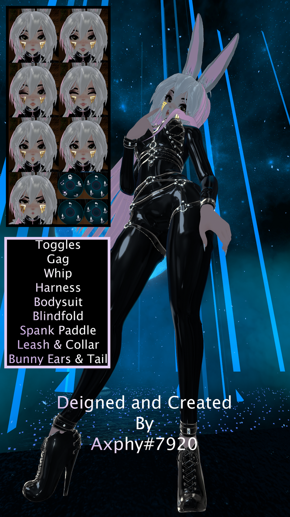 Ears, Tail, BodySuit, LowerHarness, Whip, Gag, Paddle, Mask, Leash - Axphy#7920
